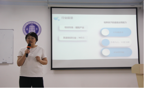 首先,兰州市英可瑞英语公司的HR蔡老师向大家展示了她们公司的整体情况和教学性质,并对集团简介、公司的办学资质、发展历程、未来发展计划、企业文化、公司特色、岗位介绍、薪酬福利和员工活动等方面作了具体的介绍。之后,北京学而思教育科技有限公司西安分公司的HR李老师从行业概况、公司简介、公司的发展历程、文化理念、品牌使命、品牌愿景、品牌精神、教育理念、网校科技、招聘岗位和薪酬发展等方面对公司作了具体的介绍,鼓励大家积极报名。最后,临夏市微哈佛英语教育科技有限公司的HR马老师则以“如何在自己的岗位中实现自身价值”为题,告诉大家“人生在于折腾”,要想实现自身价值,必须要经历与公司同盟、计划任期、确立目标、明确目标完成所需要的因素、实现目标、计划新任期这六个阶段。