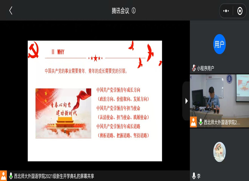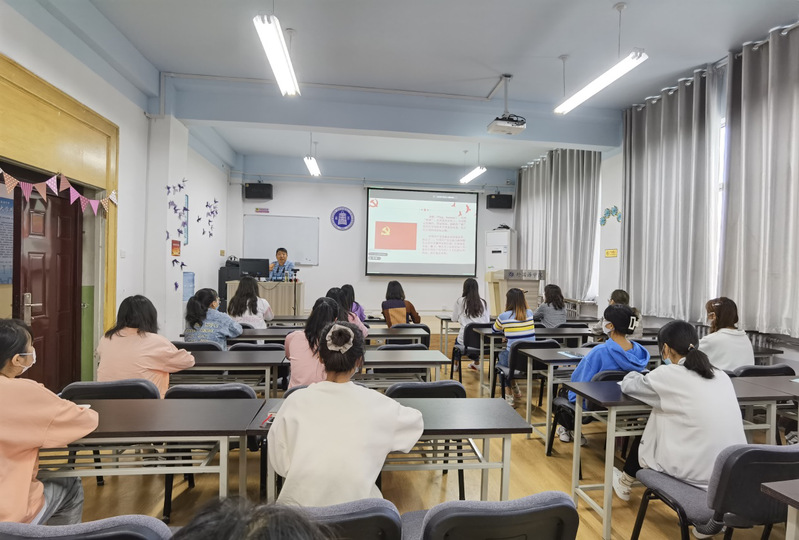 王书记以“我为党旗添光彩”为题,从中国共产党的性质宗旨、青年老员工为什么要加入中国共产党、怎样才能加入中国共产党三个方面作了一场党史学习教育报告,和广大新生同学一起回顾了党的百年历史,希望同学们立足大学学习生活,坚定理想信念,努力提高本领,不断完善自己,以实际行动积极向党组织靠拢,为实现中华民族伟大复兴的中国梦而不懈奋斗。