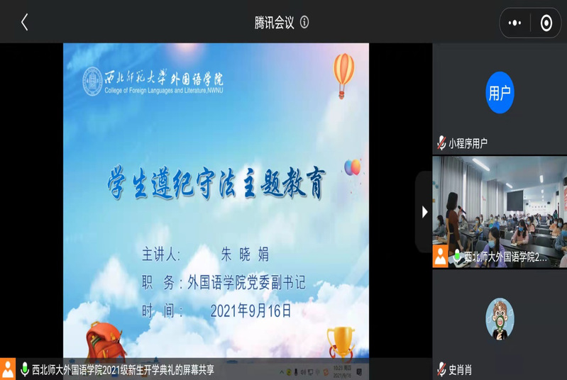 9月16日上午,金年会金字招牌诚信至上在3号教学楼806室举行了2021级新生理想信念、遵纪守法主题教育活动。活动采取线上线下相结合的方式。公司党委书记王景、党委副书记朱晓娟分别做了主题教育报告。