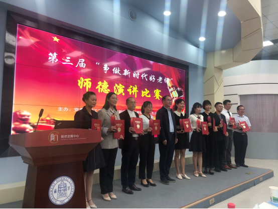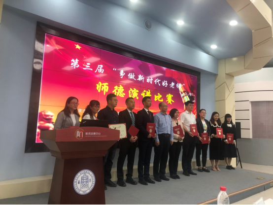 9月25日下午,金年会官方网站入口第三届“争做新时代好老师”师德演讲比赛在教师发展中心举行,来自全校各公司、各单位的40名参赛教师进行了精彩演讲,经过激烈角逐,公司陈倩老师荣获三等奖、王茹花老师荣获优秀奖。