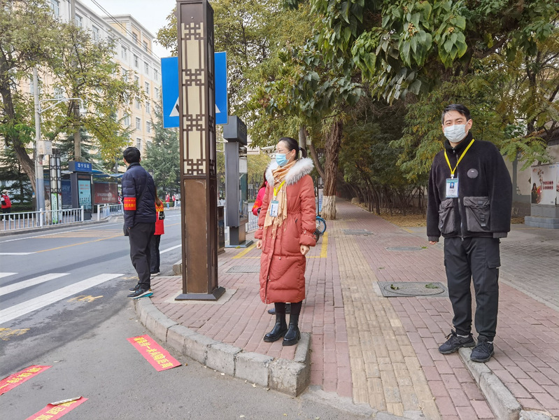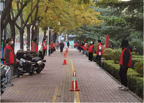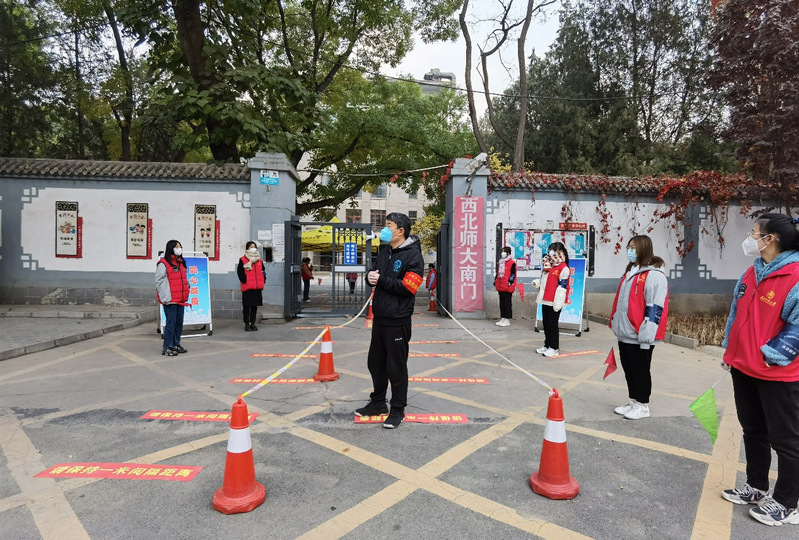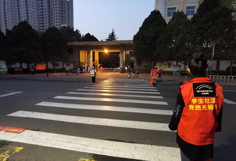 虽然天气寒冷但也阻挡不了志愿者们的服务热情,“请同学们出示健康码、通行卡、佩戴好口罩、有序排队、保持1米安全距离”,志愿者们耐心细致的提醒着每一位进出校园及公寓的同学。公司南门斑马线两侧,志愿者们有序指挥过往车辆,确保同学们安全迅速通过马路。