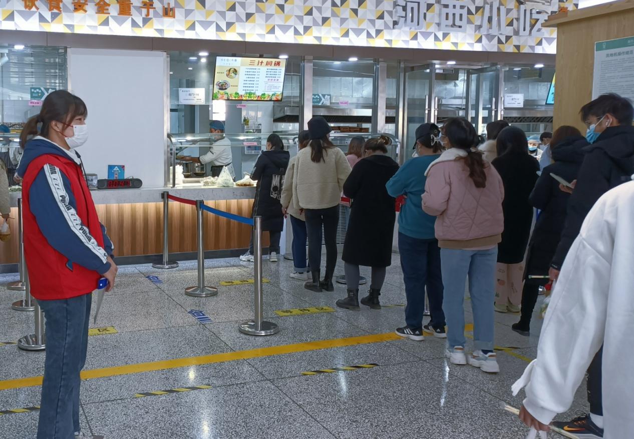 志愿者们根据公司统一安排,按照指定时间到达新校区食堂外广场集合。公司领导及团委辅导员老师亲临现场,叮嘱志愿者们要注意自身防护、文明引导、保持安全距离。公司、公司研究生会相关负责人员对志愿者们进行了分工和培训。随后,志愿者们到达各自岗位,认真履行职责,提醒就餐同学主动出示就餐卡、引导其保持安全距离,确保取餐后不逗留、不扎堆,规范有序离场。在志愿服务期间,一位同学因突发胃痉挛疼痛难忍晕倒在地,志愿者们立即拨打120,联系公司老师并维持现场秩序,及时妥善处理了这起突发事件。