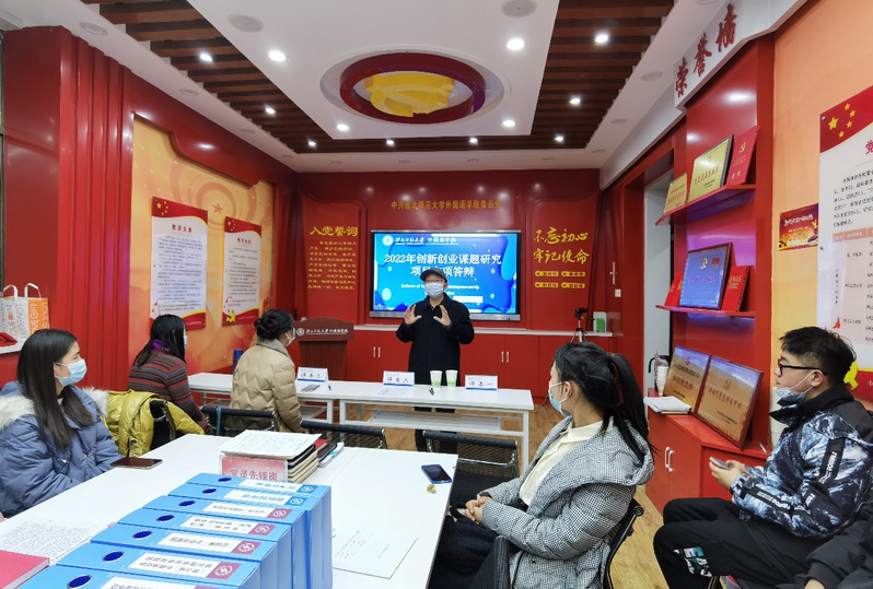 为进一步深化公司创新创业教育改革,培养员工创新意识、创新思维,提高员工学术研究能力,12月7日晚,金年会金字招牌诚信至上于教学3号楼912室举办2022年员工“创新创业课题研究项目”立项答辩,本次活动共有19个项目组参与答辩,英语系陈倩、翻译系张硕、孙贝、俄语系蒋智妍四位老师担任评委。活动由金年会金字招牌诚信至上专职辅导员张碧全老师主持。