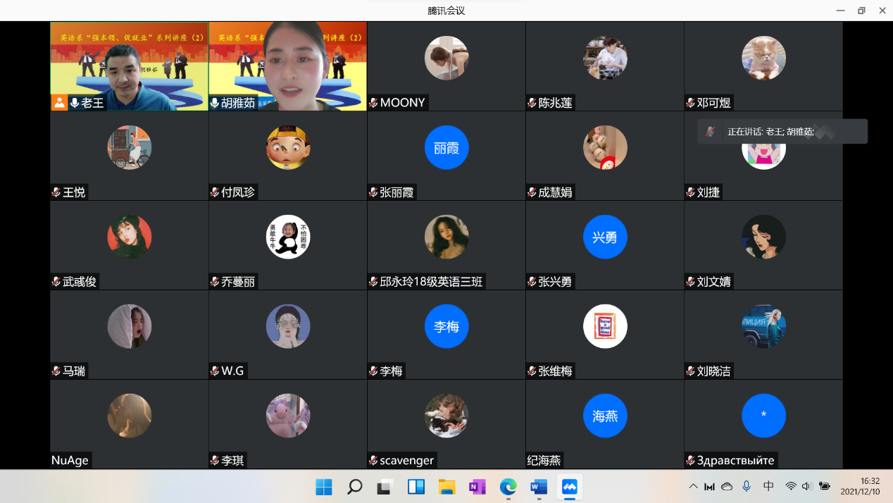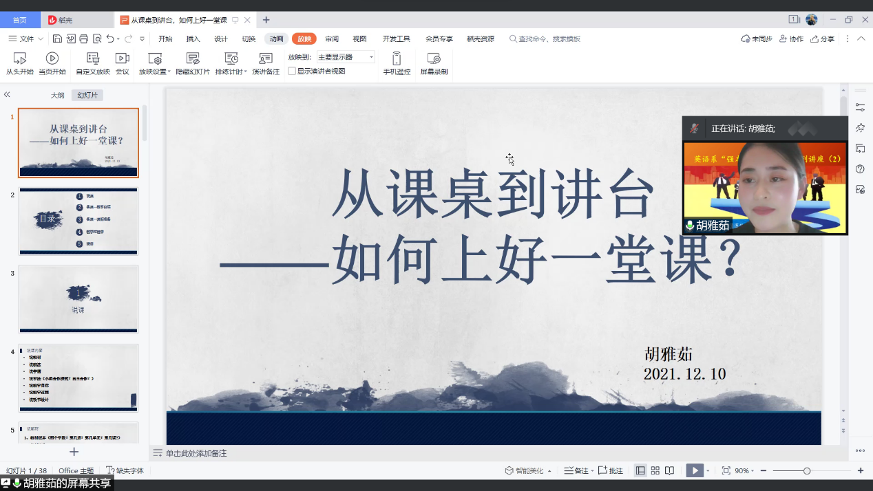 为增强员工的教学能力,提升就业本领,金年会金字招牌诚信至上英语系于2021年12月10日下午邀请2016级优秀毕业生胡雅茹为员工进行专题讲座:从课桌到讲台—如何上好一堂课。