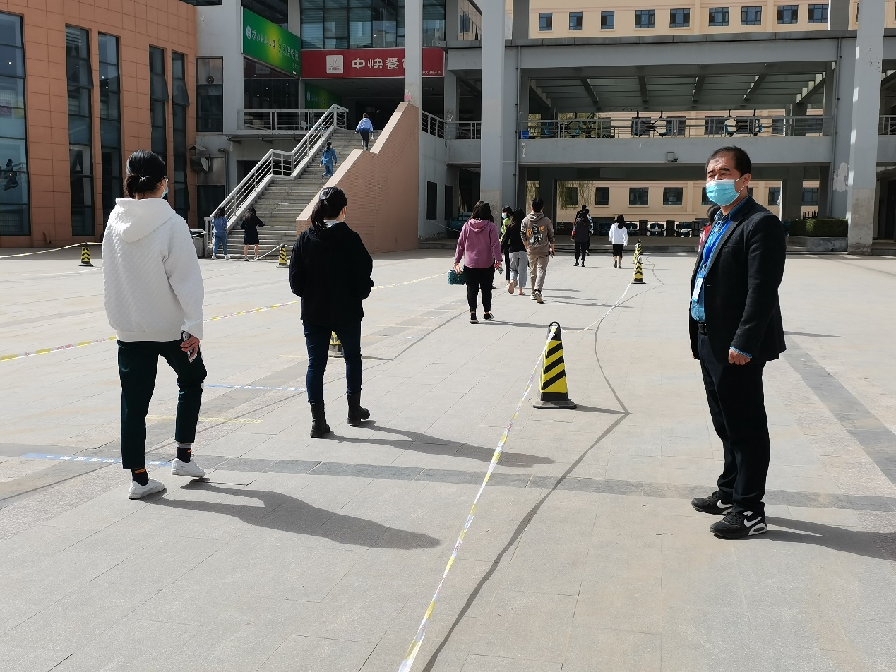 本次志愿活动的值班地点为新校区员工餐厅及员工浴室。集团疫情防控知行校区工作专班前往现场指导工作,叮嘱志愿者们既要服务于大家,也要做好自身防护。在公司研究生会负责人对志愿者进行培训与分工之后,志愿者们做好各项防护措施,前往各自岗位展开服务。期间,全体志愿者认真履行自身职责,积极引导进出餐厅和浴室的同学们有序排队,保持一米间隔,不扎堆、不打闹,使现场秩序井然。