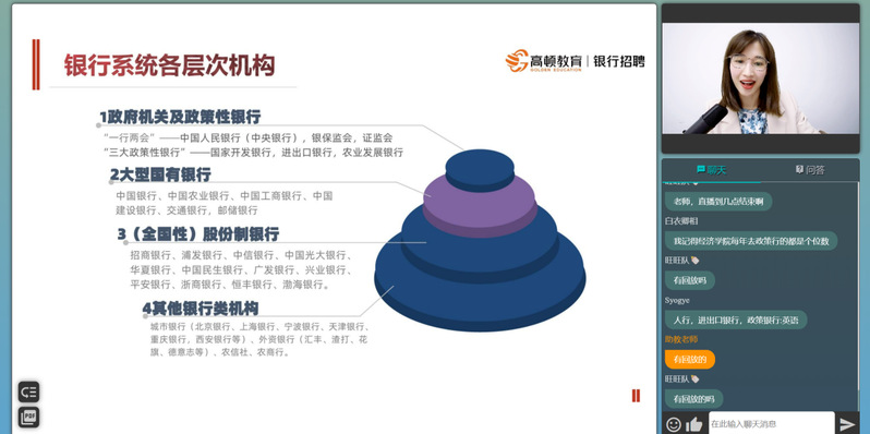 本期就业指导课主题为《行业解析商业银行职业发展与求职策略》,授课老师从商业银行分类、商行薪资福利介绍、商行招聘时间及流程、商行招聘岗位及晋升发展、商行备考策略及建议五大板块全面进行了行业解析,干货满满。学习过程中,同学们积极参与互动讨论。