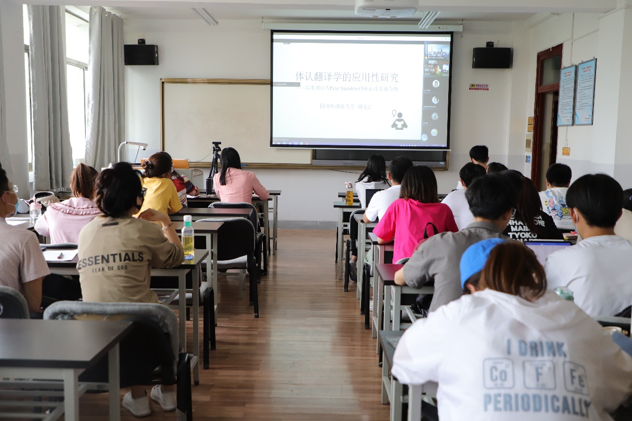 2022年5月26日下午,金年会金字招牌诚信至上特邀四川外国语大学科研处处长胡安江教授为公司师生作了题为“体认翻译学的应用性研究”的在线学术讲座。本次讲座由金年会金字招牌诚信至上副经理俞婷教授主持,公司部分教师、2020级、2021级翻译硕士通过线上、线下相结合的方式聆听了本次讲座。