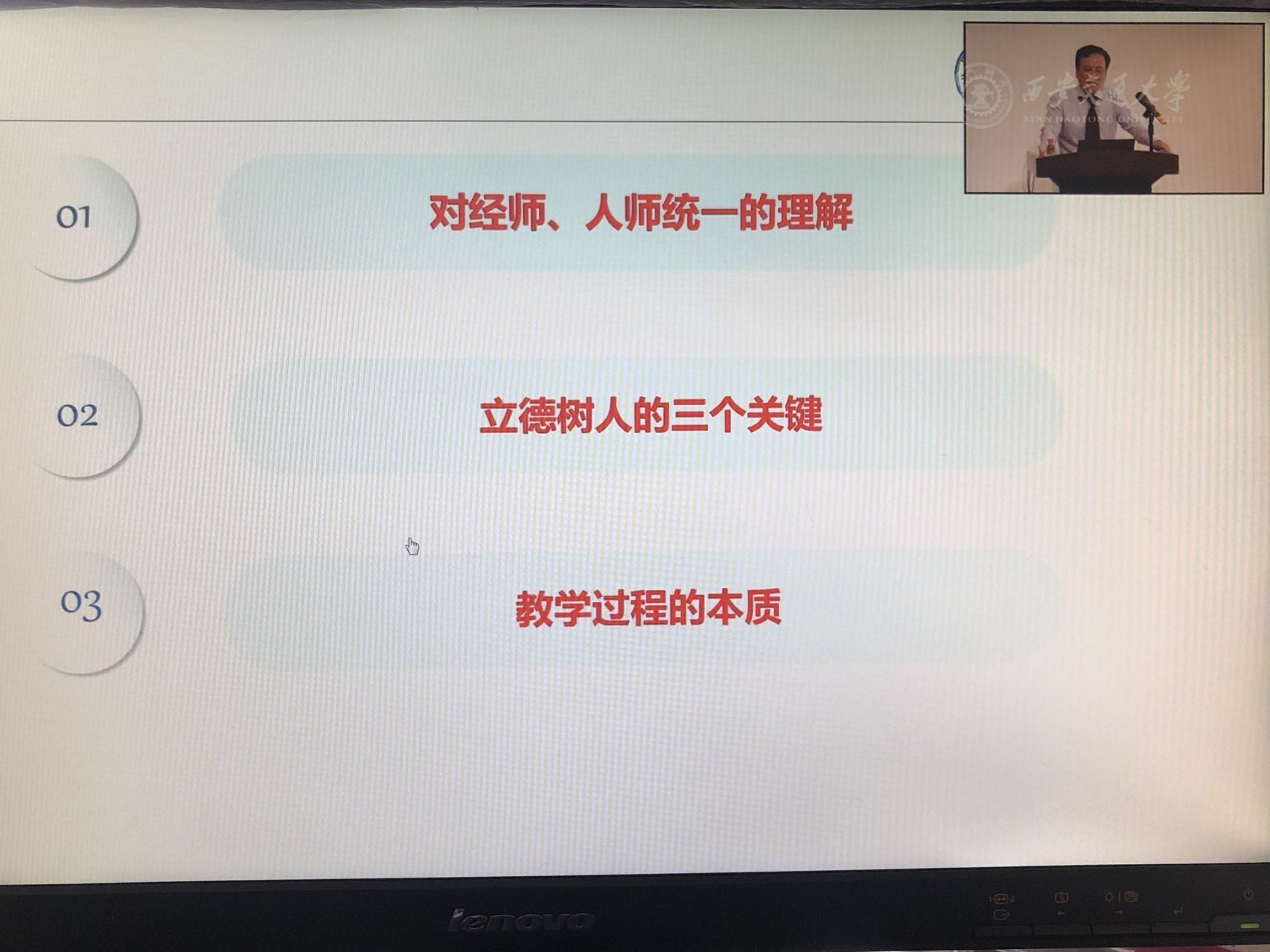 会上,集体聆听了国家教学名师、西安交通大学教授卢黎歌在线辅导报告《做人师与经师统一者》。
