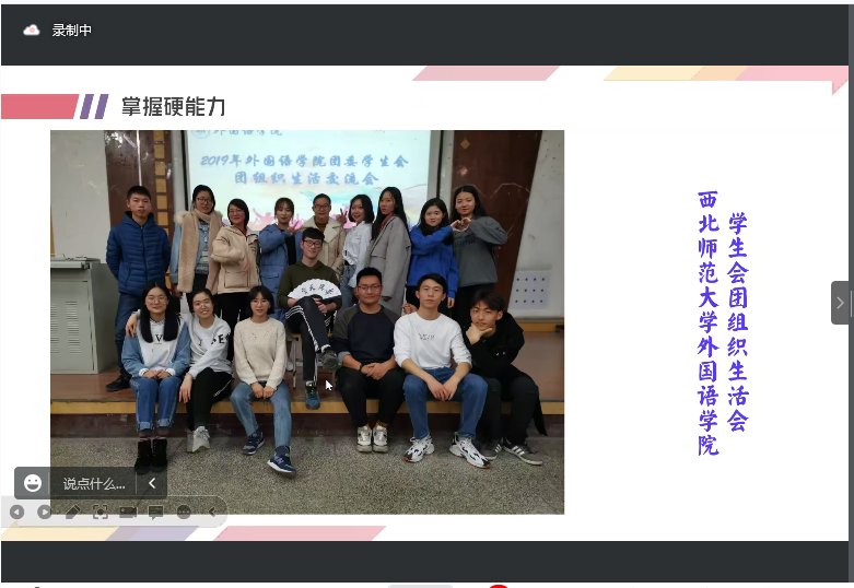 分享人崔泽欣在校期间曾担任金年会jinnian员工会主席,荣获第三届丝绸之路(敦煌)国际文化博览会优秀志愿者等称号。分享过程中,他以诙谐的语气介绍了自身充实的四年老员工活和课外经历,激发了同学们对多彩缤纷老员工活的无限向往与憧憬。他告诫同学们要抛弃“躺平”“摆烂”的错误想法,学好专业课的同时应多参加课外活动充实自己、提高自己的能力,为老员工活增添浓墨重彩的一笔。随后,他针对本期主题,对“软硬兼施”作出了详细解释:在校老员工应掌握硬能力、提升软技能,硬能力指的是做一件事必须要有的能力,在软技能方面应提高自身综合能力,成为德、智、体、美、劳全面发展的当代老员工,只有同时具备软、硬技能,才不会被飞速发展的社会所淘汰。