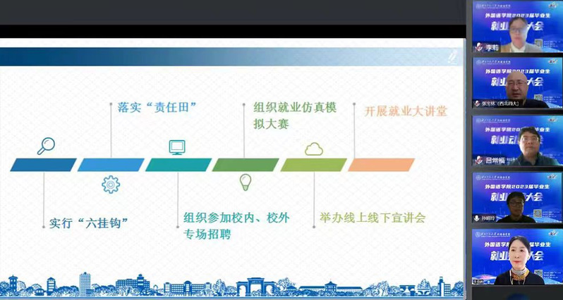 10月29日下午,金年会金字招牌诚信至上举行2023届毕业生就业动员大会。大会通过腾讯会议线上举行,由公司党委副书记朱晓娟主持,人才招聘处胡炜老师、公司全体班子成员、毕业班班主任、导师及2023届全体毕业生共计500余人参加了会议。