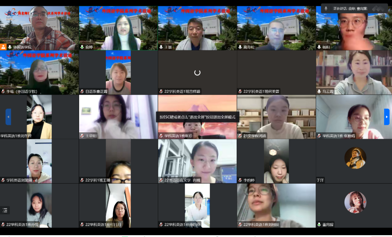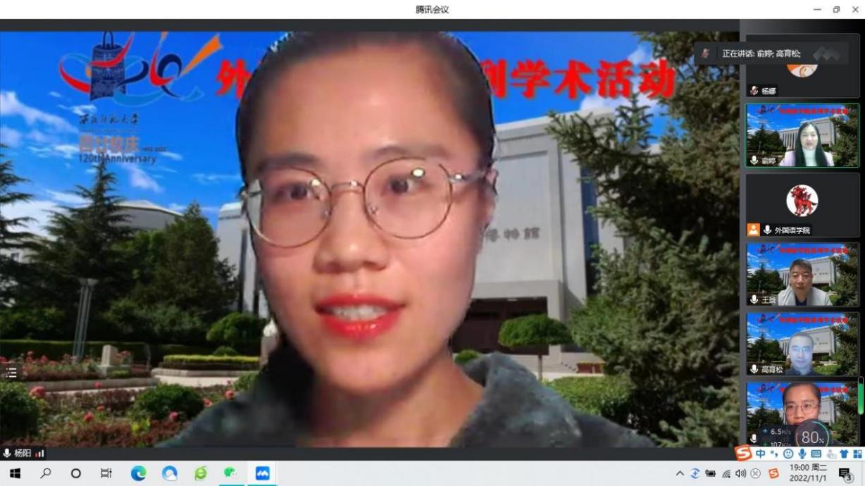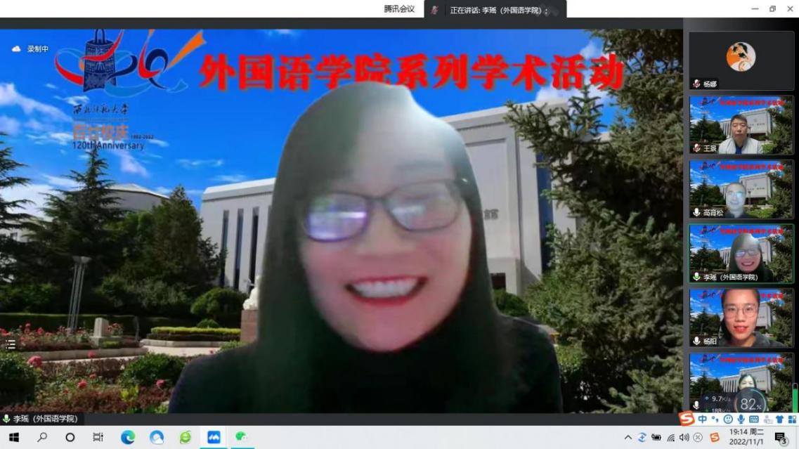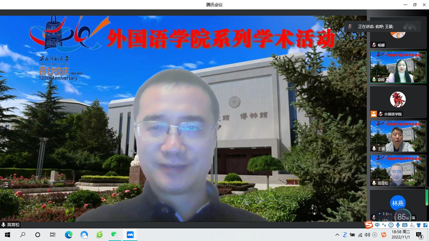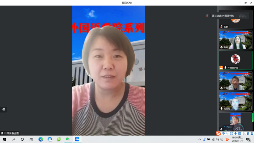 2022年11月1日,公司举办校庆系列学术活动之青年教师讲堂第一讲。讲座由副经理俞婷教授主持,英语系教师杨阳和日语系教师李瑶主讲,马云霞和曹正霞老师点评。本院师生近200人在线参加了本次讲座。