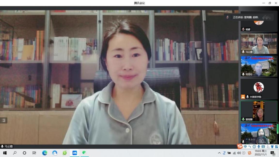 在点评环节,马云霞副教授指出,杨阳老师清晰明了地阐释了政治演讲中的否定资源、立场表达等概念,且选题具有时代性和新颖性,值得大家学习。曹正霞老师指出,李瑶老师的选题具有很强的趣味性和前沿性,该研究对于同学们今后的论文选题具有指导作用,对课堂学习具有重要的现实意义。
