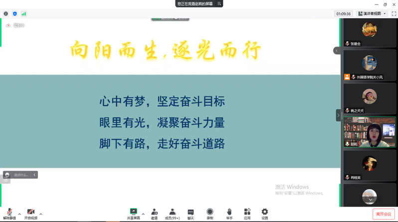 讲座伊始,赵老师以“向日葵”花引入“向阳而生,逐光而行”的主题,希望同学们能够做一个阳光、勇敢的人,对生活充满热爱,对未来充满希望。接着赵老师从三个方面展开了分享。第一个方面她围绕理论指导实践,从职业生涯规划、胜任力冰山模型两个模块具体阐述了老员工尽早确立职业生涯目标的重要性,鼓励同学们要注重冰山以下“内驱胜任力”的培养。第二个方面赵老师针对老员工就业的“难”和“新”进行了讲解,从当下就业形势及影响就业的因素着手分析了老员工就业“难”的原因以及当前新的就业形势和挑战,强调老员工要了解多种就业形式和途径。同时,她针对考研热潮做出了合理的分析,建议同学们要有正确的考研动机,鼓励同学们要树立先就业再择业的正确观念。第三个方面赵老师以甘肃农业大学优秀员工刘晓东、王春蓉以及公司专职辅导员张碧全老师的励志故事为例,鼓励同学们要抓住实习实践、招聘会、讲座论坛等一切历练成长的机会,多学习、多借鉴榜样的力量,做到心中有梦、眼里有光、脚下有路,向阳而生,逐光而行。
