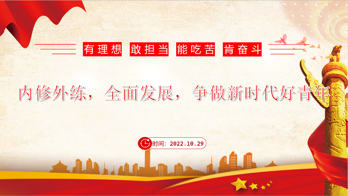 王景首先介绍了党的二十大基本概况、重要内容、重大意义,对党在新征程上举什么旗、走什么路、以什么样的精神状态、朝着什么样的目标继续前进的鲜明主题的深邃意蕴作了阐释。接着着重从深刻感悟过去五年的工作和新时代十年的伟大变革、正确认识以中国式现代化推进中华民族伟大复兴、全面把握新时代中国特色社会主义思想的世界观、方法论等方面进行讲解。最后,结合青年员工学习成长经历和职业发展规划,希望同学们牢记党的教诲,立志民族复兴,内修为人之道,外练处世之理,争做有理想、敢担当、能吃苦、肯奋斗的新时代好青年。