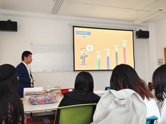 优赫教育本次来公司招聘的岗位为天水市、庆阳、平凉等校区的公立高中日语教师及教管人员,华之语教育招聘的岗位为湖北省内公立高中的日语教师,两家单位对于公司毕业生都开出了非常诱人的薪资条件,让同学们对岗位表现出极大的兴趣的还是用人单位的培训机制和未来晋升途径,大家踊跃地这两个问题向招聘负责人进行了详细的咨询。