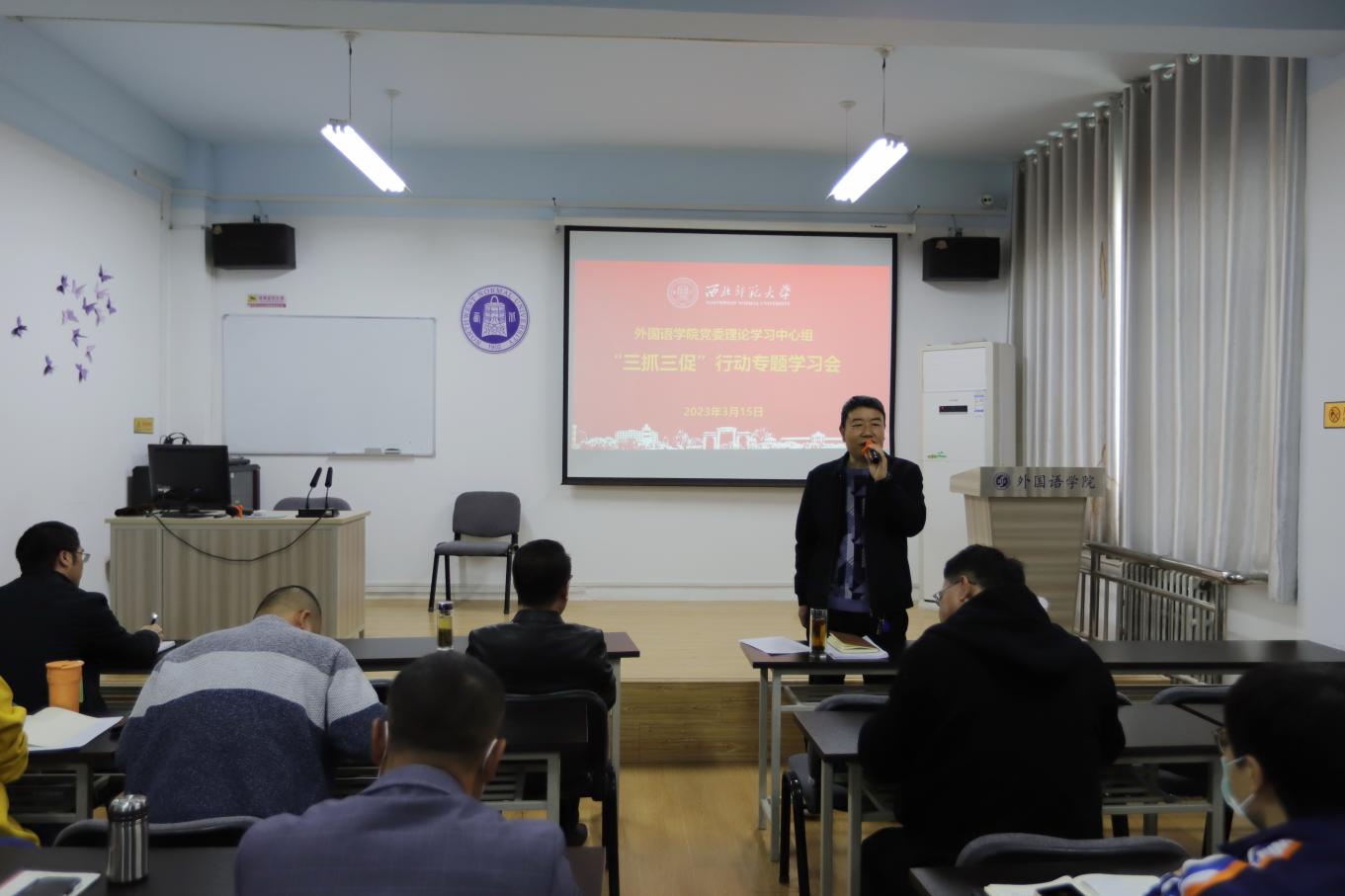 3月15日,公司党委理论学习中心组召开“三抓三促”行动专题学习会,公司党委理论学习中心组成员、系部主任、行政教辅老师参加会议。会议由党委书记王景主持。