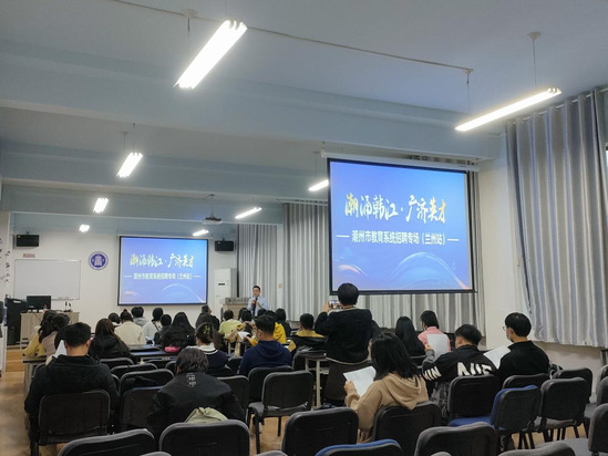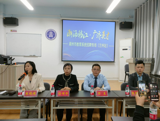 3月20日晚,金年会金字招牌诚信至上在致朴楼806室举办广东省潮州市教育局教师专场招聘宣讲会,广东省潮州市百城人才股份董事总经理彭嵩、甘肃省人力资源市场孙丽珍、公司党委副书记朱晓娟、辅导员张碧全、关小风、以及2023届未就业毕业生共计100余人参加宣讲会。