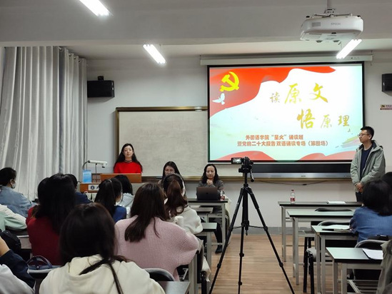 最后,梁老师希望大家能发挥专业优势,从外语专业的角度认真研读党的二十大报告,深入学习贯彻党的二十大精神。