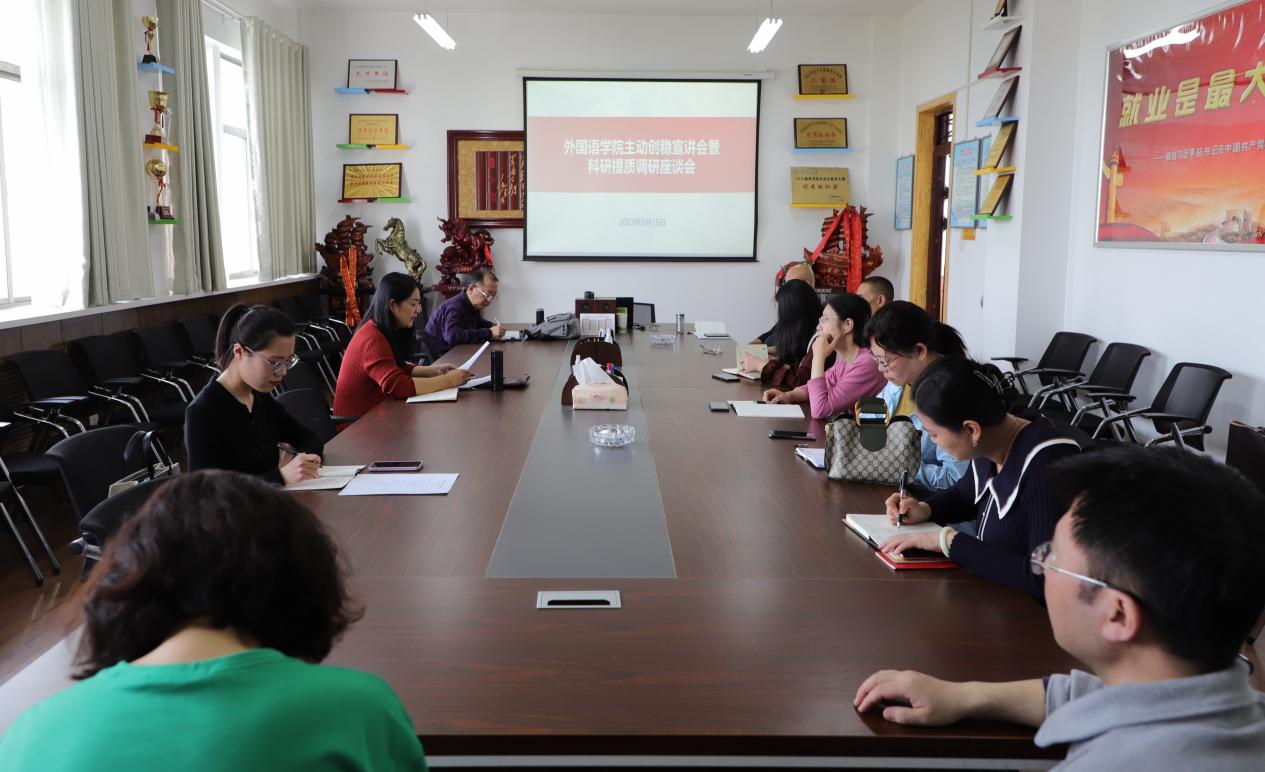 2023年5月15日下午,公司在8楼会议室召开了“金年会金字招牌诚信至上主动创稳宣讲会暨科研提质调研座谈会”。会议由副经理俞婷主持,本院11支学术团队负责人和部分教师代表参加了本次会议。
