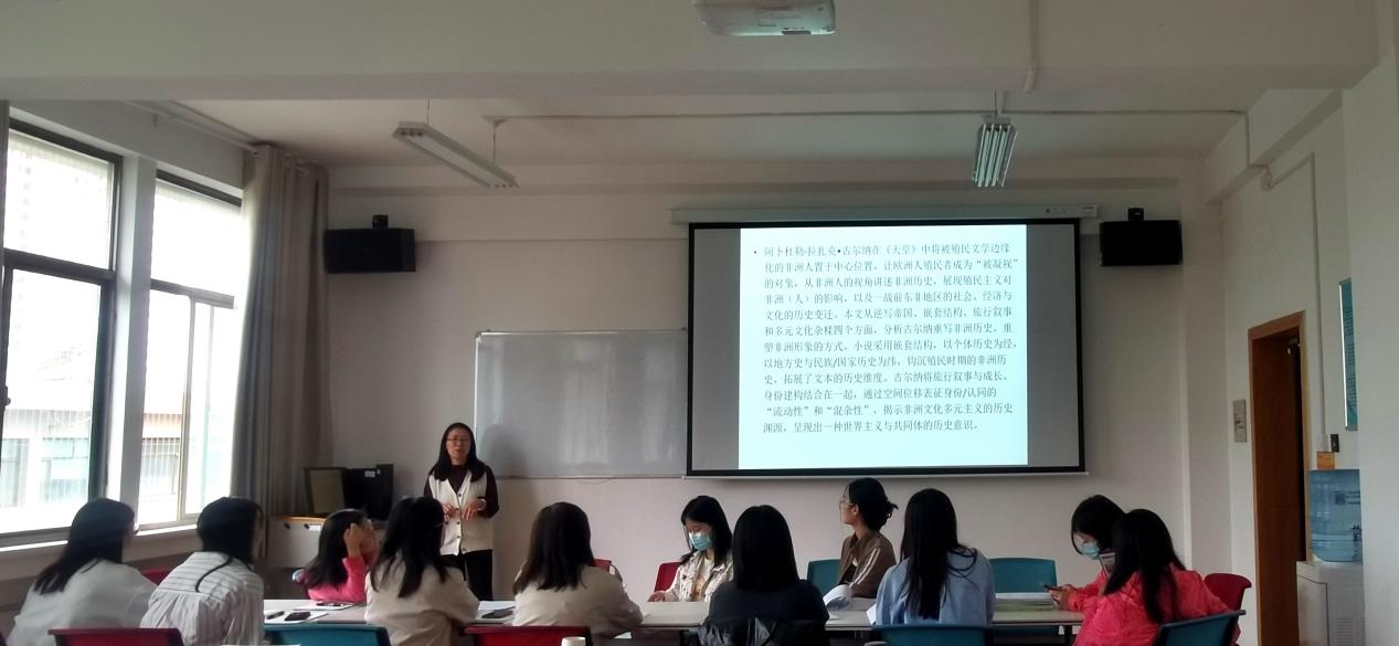 2023年5月17日上午九点半,美国文学学术团队在致朴楼507教室举办学术活动。本期主讲人赵秀兰老师为团队做了题为《古尔纳<天堂>中的非洲叙事》的学术报告。外院美国文学团队成员与部分研究生参加了本次活动。