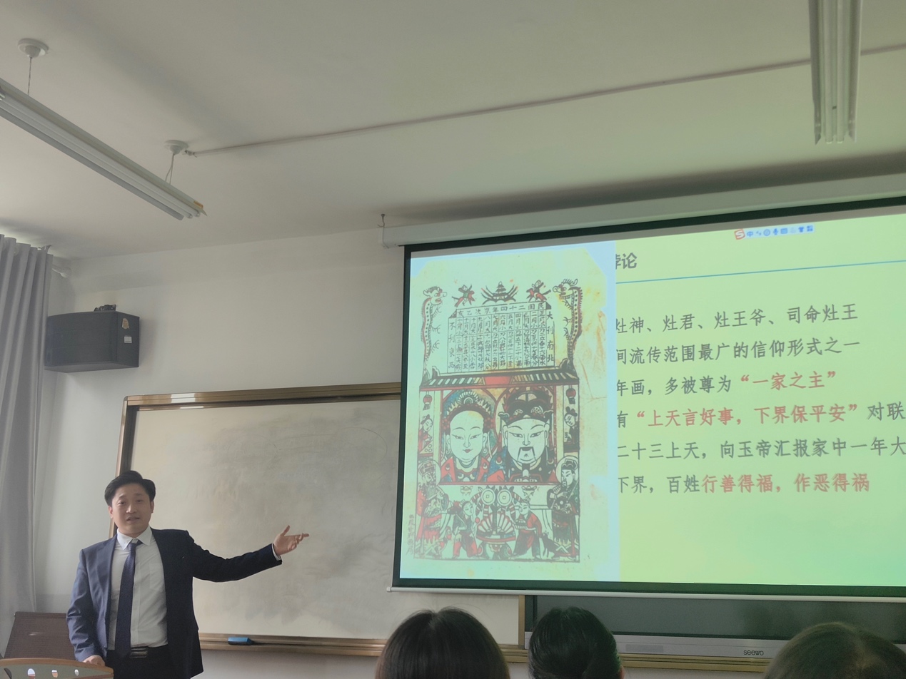 张耀公老师先对“灶王信仰与灶王信仰悖论”进行了说明,指出了民间对灶王信仰的双重态度。他认为,通过研究灶王叙事与民俗仪式之间的对应关系,可以为灶王信仰中存在的多个问题提供合理的解释方法。接着,张老师围绕“灶王信仰与祭灶礼俗”“灶王故事”“灶王信仰与灶王故事的多元关系”三个方面进行了详细讲解。张老师进一步表示,在比较文学的视野中研究灶王信仰,具有深厚的理论价值和丰富的现实意义。