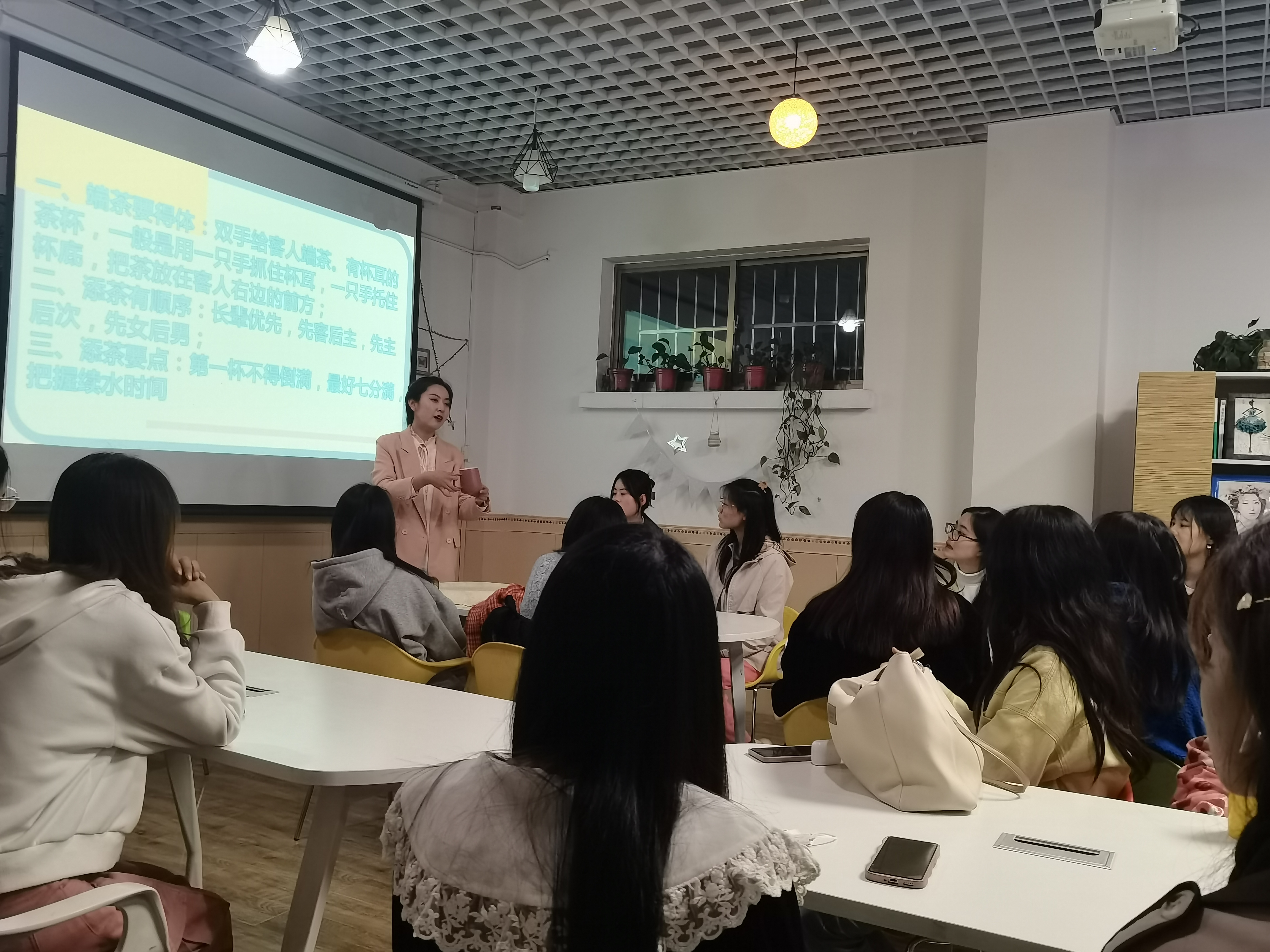 志愿服务队先后组织了5次集体培训,培训内容包括妆容与盘发、站走坐仪态、奉茶与托盘、迎宾与颁奖流程、礼仪方面禁忌及实践课程培训。培训中,老师针对现代礼仪中的形象气质及礼仪原则,用通俗易懂的语言、鲜活生动的事例、标准的示范动作,详细地从仪态训练、服饰礼仪、言语礼仪、行为礼仪等方面进行讲解和现场演示,让员工对现代礼仪有了更全面的认知。