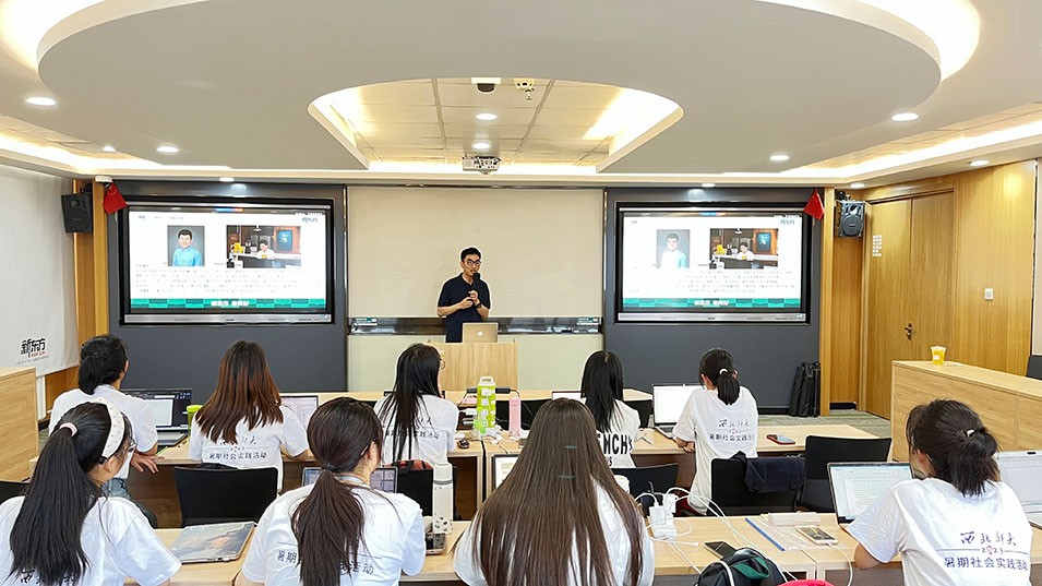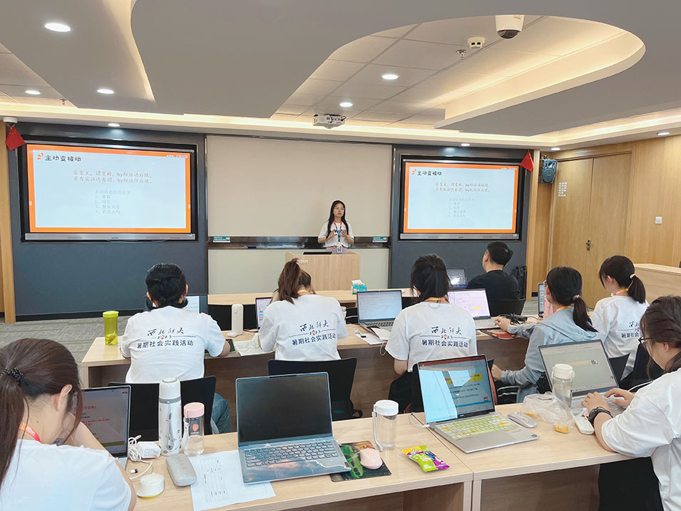 社会实践过程中,队员们通过线上、线下课程的学习,了解了有关简历制作、面试技巧、职场沟通及个人职业规划等方面的知识,学习了新东方优秀教师分享的职场经验,同时,以小组为单位观摩了各校区少儿部及初高中的相关课程,并对教师的课堂活动与员工的反应做出观察与评估。除此之外,新东方兰州公司的优秀教师们为队员们实地讲解了关于教师职业素养和技能方面的知识,从课件制作、教案书写到课堂互动、课堂管理,从课堂的旁观者到课堂的引导者,队员们深刻了解和学习了成为一名优秀的教师需要具备的各种条件和能力。