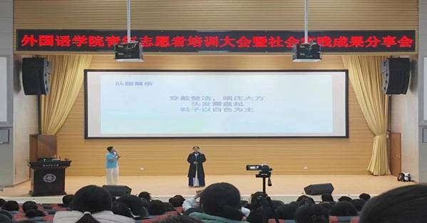 在青年志愿者培训中,廖家亿和史文慧分别对公司“蒲公英”涉外应急语言服务项目和“馨译”外事志愿服务队进行详细介绍,并通过现场展示,引导同学们正确认识应急语言和礼仪志愿服务;最后,“指南针”就业能力提升工作坊实践团、“硬盒童盟”实践团和“多”农直播 “语”你优品实践团等七个暑期社会实践团分享亲身实践经历,号召同学们积极参加社会实践,与时代同频共振。