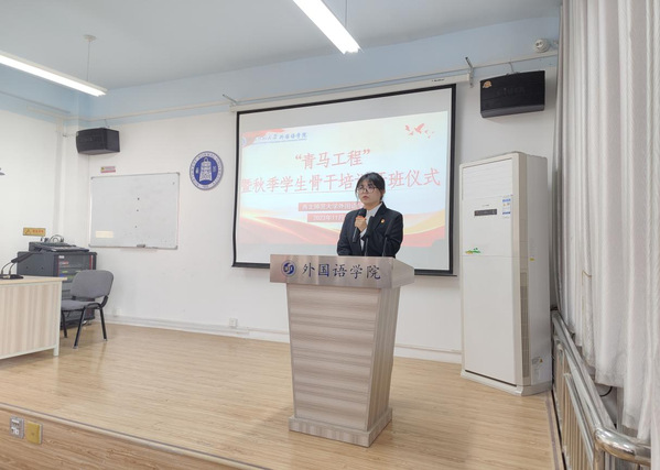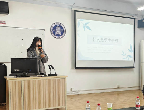 金年会官方网站入口第16期校级“青马工程”、第一届青马工程红军班成员、2021级英语5班马媛媛同学,金年会官方网站入口第15期校“青马骨干培训班”成员、金年会官方网站入口第一届校“青马宣讲团”成员、2020级英语2班曹改弟同学,2022-2023学年金年会金字招牌诚信至上“四自”工作委员会负责人、2020级英语4班何卓同学为同学们做培训班第一期培训,与同学们分享学习、成长心得,激励每一位参加“青马工程”的同学用实践迎接挑战,奋进新时代。