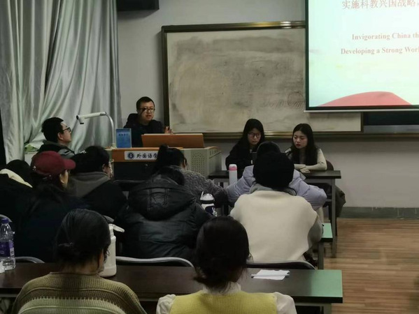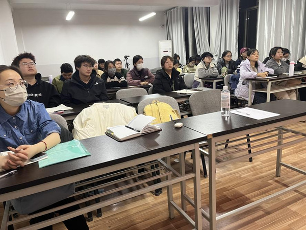 诵读会上,2023级外国语言学及应用语言学研究生赵佳怡和贠晶晶对党的二十大报告选段进行了双语诵读。尹鹏老师对党的二十大报告中专用名词的翻译特点进行了解读,让同学们结合自身所学专业学习领会党的二十大精神。