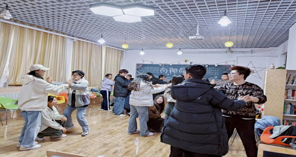 活动带领人以“爱的魔力转圈圈”作为开场白,引导同学们进行“抱团转圈圈”的游戏,在抱团中吸收“爱的魔力”;接着,活动带领人和同学们一起互动,进行“明星大牌猜猜猜”的游戏,同学们在探索中不断交流,了解彼此的性格特点;最后,在轻松融洽的氛围中展开“翻牌”游戏,通过小组协作的形式找到正确的扑克牌顺序,这不仅需要团队合理的分工协作,更需要“不畏前路,勇往直前”的冲劲。