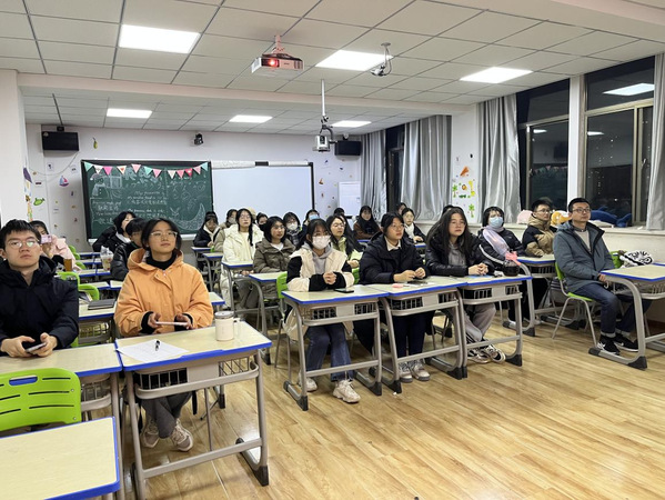12月15日晚,金年会金字招牌诚信至上“读原文 悟原理”—“星火”诵读班暨党的二十大报告双语诵读专场(第十场)在致朴楼606室如期举行,本期邀请到公司英语系副教授刘利平担任指导教师,公司专职辅导员刘宁老师主持,公司近百名员工参加。