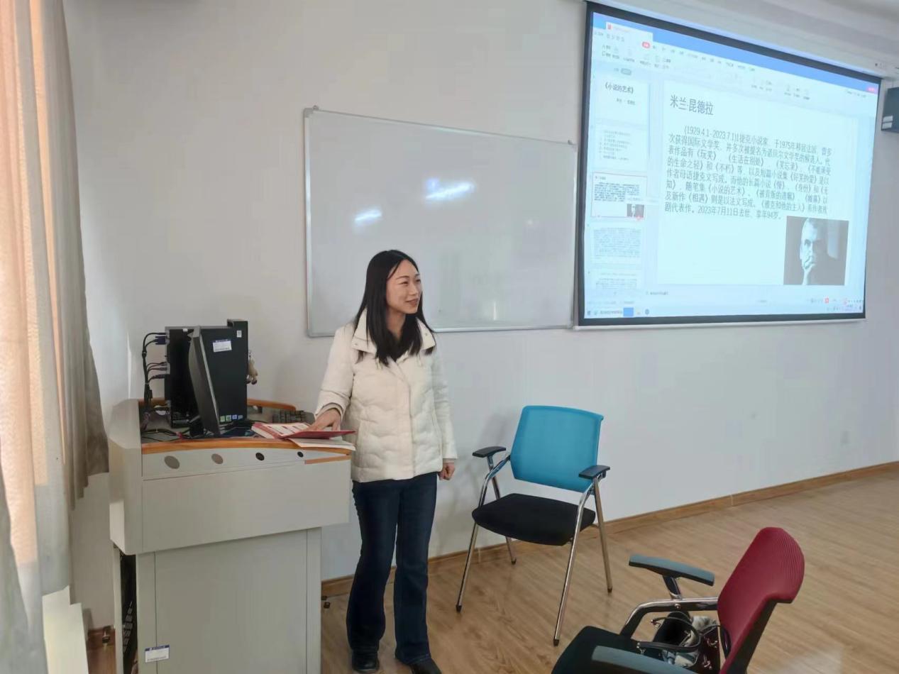 2023年12月21日下午四点半,美国文学学术团队在致朴楼505教室举办学术活动。本期主讲人张佩老师为团队作了题为“小说家说小说:米兰·昆德拉与《小说的艺术》”的分享。本次活动由赵秀兰老师主持,外院美国文学团队成员与文学方向部分研究生参加了本次活动。