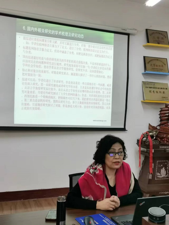 靳琰教授结合自己2020年获批的国家社科项目“网络语言暴力资本消费操纵机制及其防治的批评性话语研究”,从选题凝练、学科归属、文献梳理、研究内容、研究价值、填写技巧等方面全方位地做了详细讲解和经验交流。