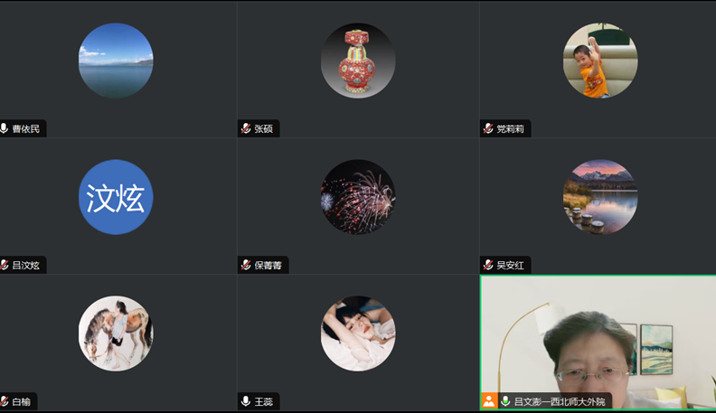 曹老师和保老师与参加本次活动的师生进行了热烈的互动交流后,吕文澎老师总结说,曹老师有关语义表征原型范畴的研究有助于提升翻译批评的客观性与科学性,学术价值很高,前景广阔,建议大家积极探索、大胆尝试;保老师分享的大学英语课程思政教学实践,全面、系统,其教学案例生动、具体,很有借鉴意义,我们共同以文化人,立德树人。