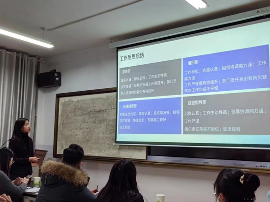 本科生和研究生员工组织主席团成员及部门负责人围绕政治引领、道德品行、学习情况、工作成效、纪律作风等方面进行汇报,在对所负责的部门工作进行全面总结的同时实事求是地分析工作中的优点与不足并提出改进办法,展望未来。述职结束后,评议组成员对参与述职的员工组织成员进行了现场评议,公司党委副书记安燕对同学们在公司员工工作中的付出表示感谢,希望同学们能够扬长避短,在来年的工作中不断改进。