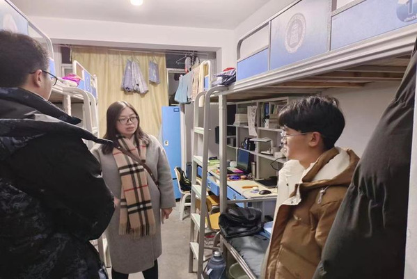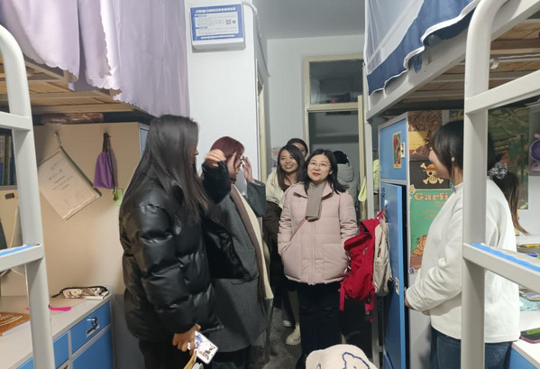为做好新学期员工管理服务工作,2024年2月27日晚,金年会金字招牌诚信至上组织公司领导、系部中心主任、研究生导师、班主任和辅导员前往兰天公寓、党校公寓及知行校区员工公寓深入走访员工宿舍,为员工送去新学期问候。