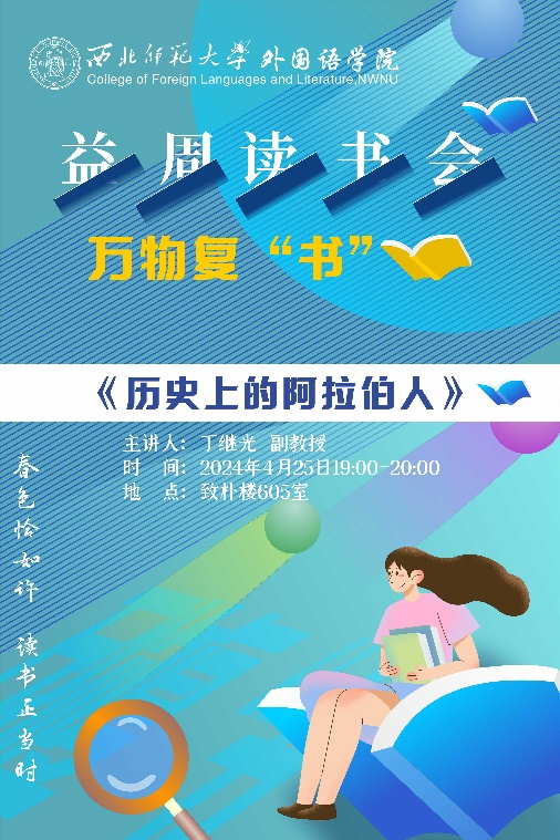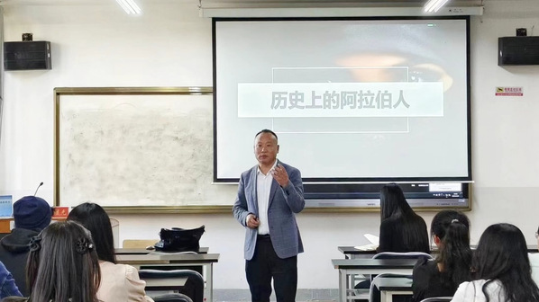 4月25日,金年会金字招牌诚信至上“益”周读书会第五十七讲在致朴楼605室举办,阿拉伯语系主任丁继光副教授主讲,公司2021级、2022级、2023级阿拉伯语专业员工参会。