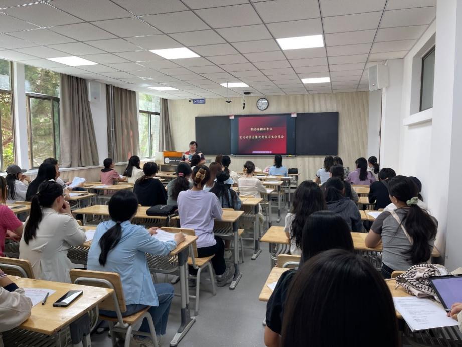 翻译系杨晓红老师向指导教师和全体员工介绍了本届专业实习工作的前期准备工作和实习单位安排情况,并就实习过程中的实践任务要求、实习报告撰写、任务提交、人身安全等重要事项做了详细讲解。