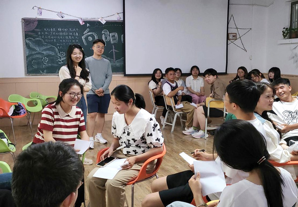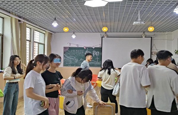 活动开始前,带领人以“松鼠搬家”游戏调动员工积极性,带领员工思考“落单”和“报团”现象出现的原因,鼓励员工们在团体之间建立信任感,为第二轮游戏“小小动物园”做准备。随后,带领人将员工分组,指导同学们介绍自己喜欢的动物,并互相交流、分享收获,引导同学们认识到人和人之间存在多样性,发现自己的优点和价值,学会在集体中发挥优势和作用;接下来,活动带领人以团队协作为线索进行“抢板凳”游戏,鼓励员工积极思考、踊跃发言,感受“众”的力量,并学会在实践中检验方法;最后,各小组进行“盲人与拐杖”游戏,同学们分别体验盲人与引路人的角色,进一步加深团体的信任合作,体验助人与受助的感受,增加成员之间的信任和集体的凝聚力。