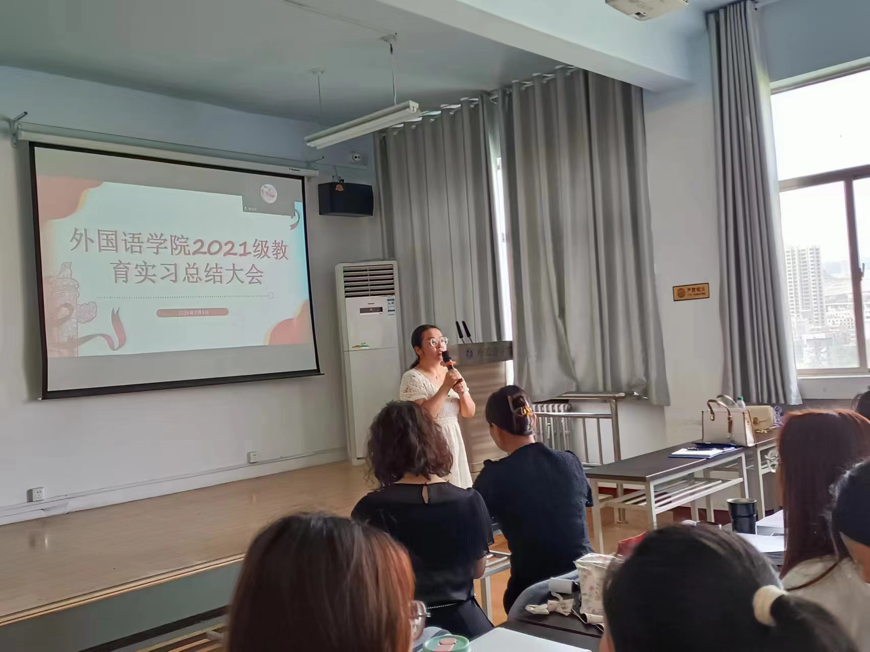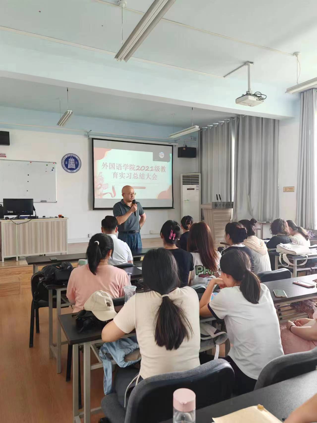 最后,英语系主任陈倩老师对实习后续相关工作作以说明,希望同学们能够认真总结,深入反思,进一步提高实践技能。