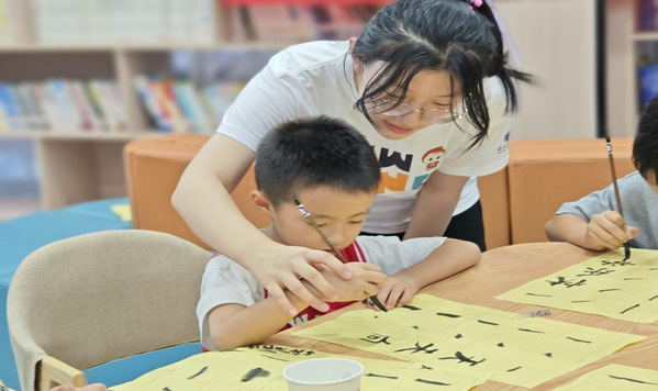 思想引领植情怀,传统文化润心灵实践队员精心设计“祖国旗帜在我心”“汉字观人生”“中华服饰真多彩”课程,从国旗、党旗、团旗的知识讲解,到携手共制国旗升降台;从一竖一撇一横的汉字故事,到手握手感受握笔、运笔和书写;从简单的线条、单一的色彩,到多姿多彩的民族服装。实践团队循序渐进,带领孩子们从中华传统文化中汲取智慧和精神养料,厚植青少年爱国情怀