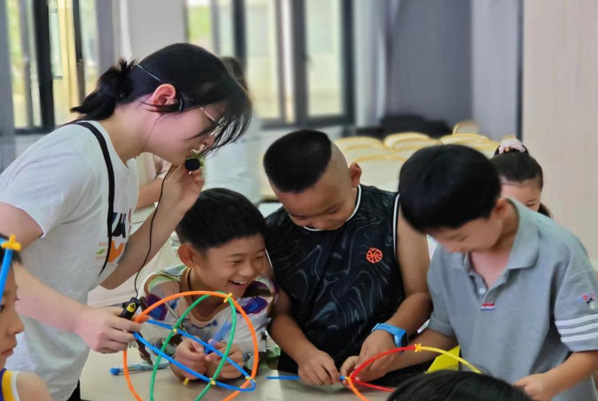 科技制作长本领,动手实践启智慧。在小小眼观大世界”课中从裁剪镜片、折叠纸板到组装镜头、调整带子……实践队员和孩子们一起制作VR眼镜,探索虚拟世界的奇妙;在“小小宇航员课堂上,实践队员化抽象为具体,和小孩子一起制作火箭模型,启迪航天梦;在吸管创意活动中,实践队员用吸管、纽扣等简单材料,引导孩子们发挥奇思妙想,搭建心中的“世界”,在实践中提高创造力,激活创新潜能。