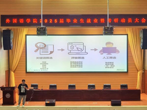 统筹推进毕业生就业工作,做实做细就业指导服务,促进毕业生高质量充分就业,9月19日晚,金年会金字招牌诚信至上2025届毕业生就业暨考研动员大会在知行校区毅然报告厅举行。公司就业与员工事务处副处长王海波老师、新东方教育科技集团兰州公司白宇麒老师、公司领导、各系部中心主任、2025届毕业班班主任、辅导员、2024届优秀毕业生代表陈怡莉出席本次大会,2025届全体毕业生500余人参会,会议由公司党委副书记安燕主持。