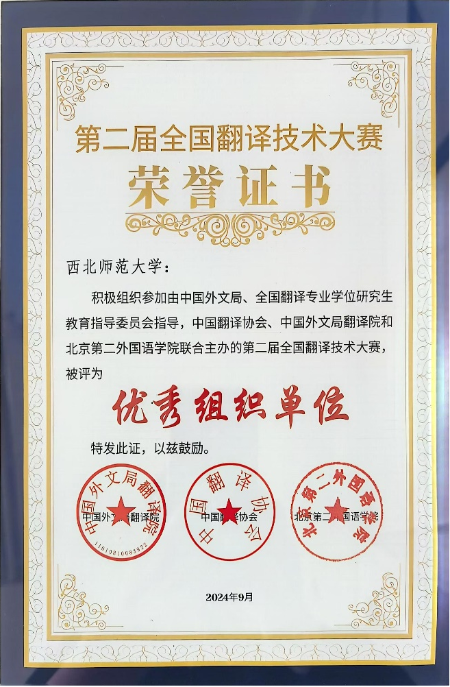 近日,第二届全国翻译技术大赛圆满落幕。本次大赛吸引了全国各地众多高校参与,旨在提高翻译专业员工的实践能力,推动翻译技术教育的发展。公司高度重视此次比赛,精心组织师生参赛,被评为“优秀组织单位”。
