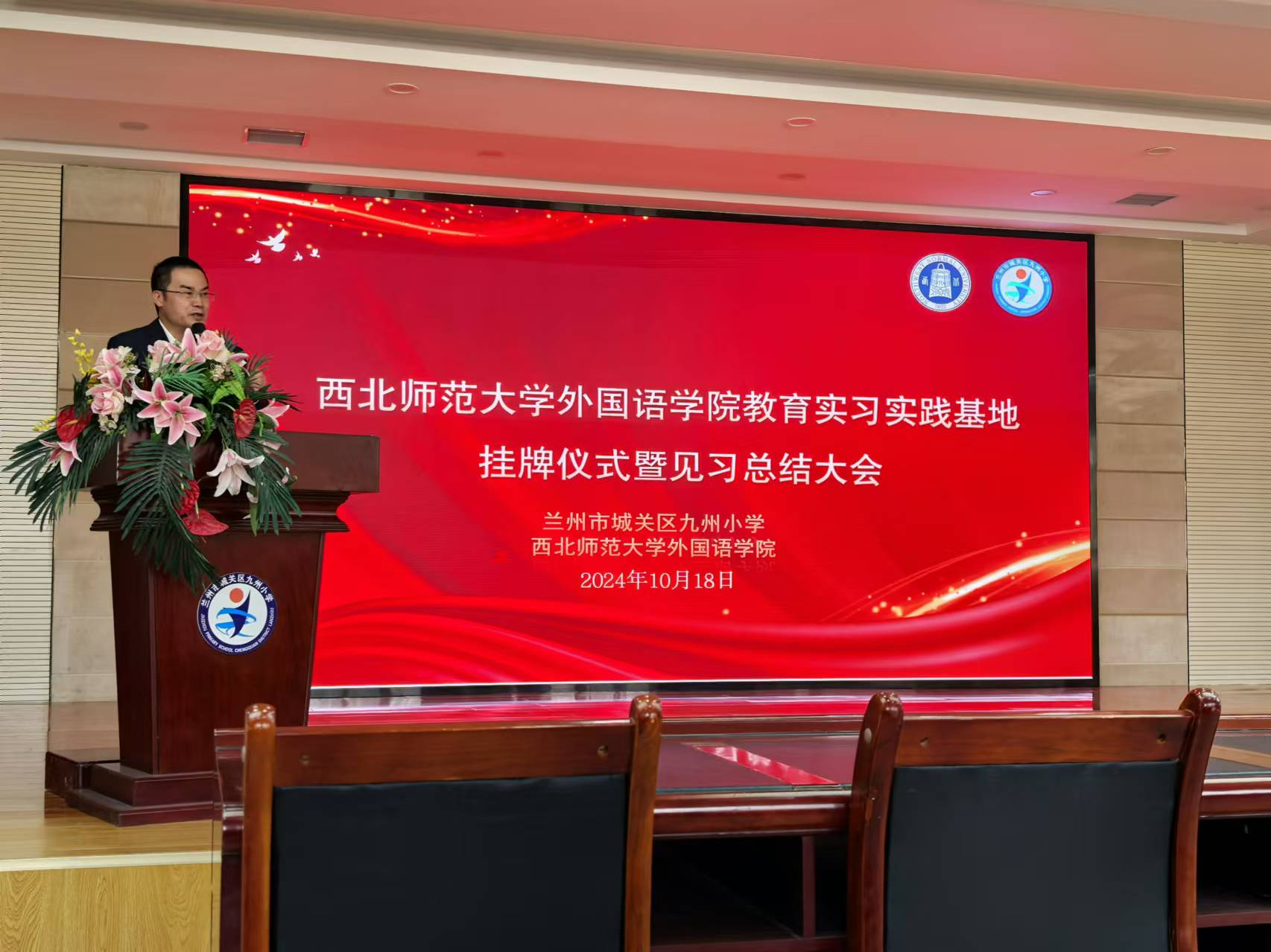 2024年10月18日,金年会jinnian与兰州市19中教育集团知行中学、兰州市城关区左家湾公司和静宁路教育集团九州小学合作共建的“教育实习实践基地”挂牌仪式分别在三所基层公司举行。