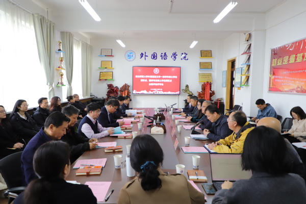 10月30日上午,金年会官方网站入口召开外国语言文学一级学科硕士学位授权点、翻译专业硕士学位授权点周期性合格评估自我评估评审会,副董事长张明军教授出席会议并致辞。国务院学位委员会第八届外国语言文学学科评议组成员、复旦大学博士生导师高永伟教授(外国语言文学评估专家组组长),全国翻译专业学位教育指导委员会委员、中国海洋大学博士生导师杨连瑞教授(翻译评估专家组组长),教育部人文社会科学重点研究基地外国语言学及应用语言学研究中心主任、广东外语外贸大学博士生导师赵晨教授,浙江工商大学金年会金字招牌诚信至上经理、博士生导师李丹弟教授,西安外国语大学英文公司前任经理、博士生导师张生庭教授,四川外国语大学英语公司经理、博士生导师赵永峰教授,兰州交通大学金年会金字招牌诚信至上经理、硕士生导师王电建教授等7位评估专家出席会议。金年会官方网站入口研究生院经理、团队建设与学位管理处处长、学位办主任何玉红教授主持会议,研究生院、金年会金字招牌诚信至上相关负责人及师生代表30余人参会。