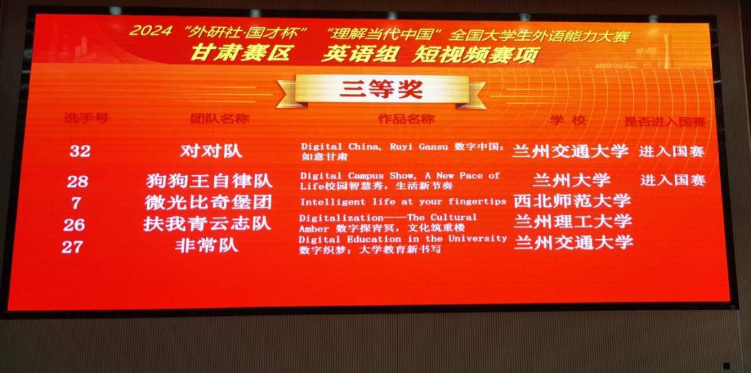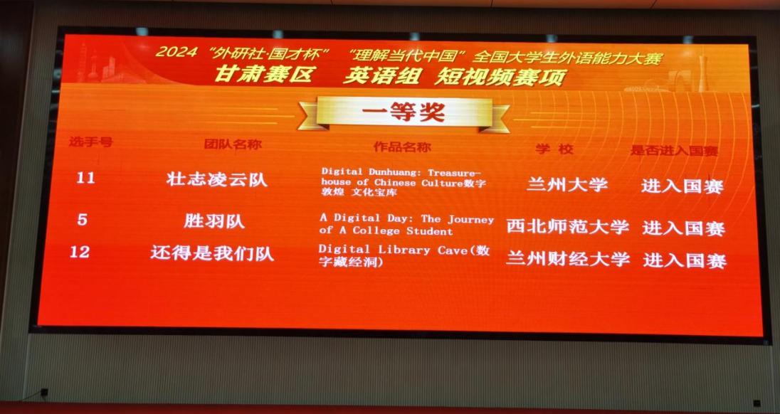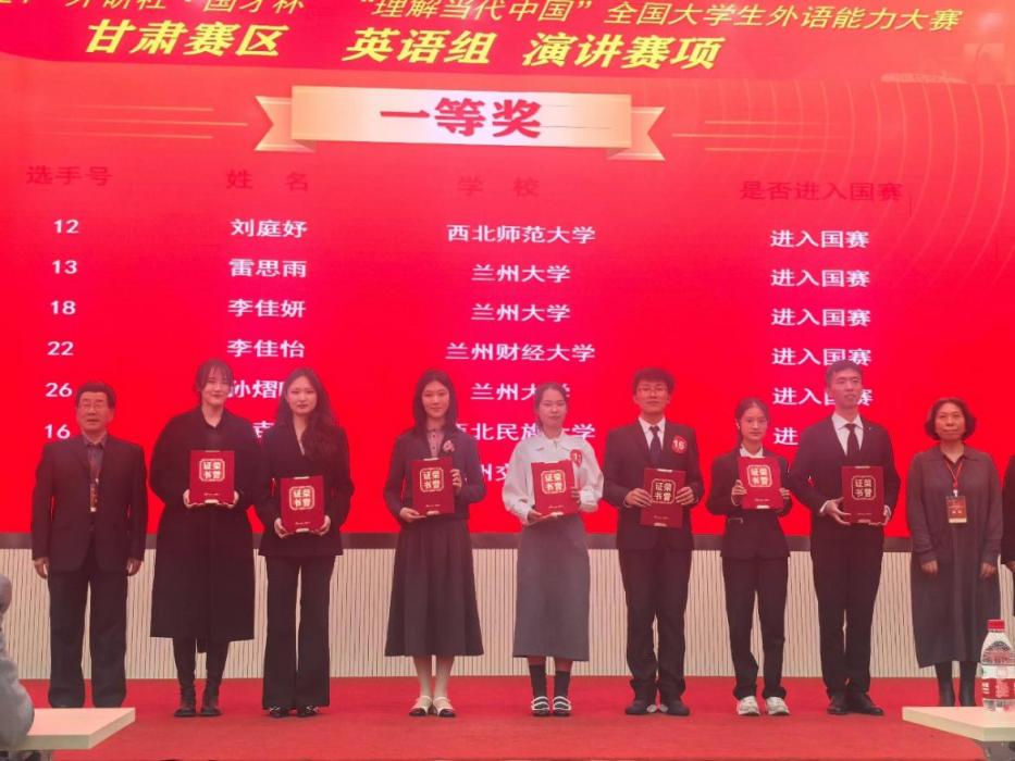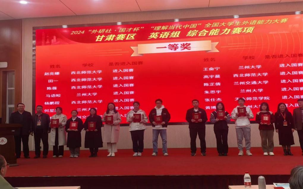 2024年11月2日,2024“‘外研社·国才杯’理解当代中国”全国老员工外语能力大赛甘肃赛区复赛在兰州财经大学成功举办。本次大赛由甘肃省教育厅主办,兰州财经大学、甘肃省大学外语教学研究会、外语教学与研究出版社承办。大赛涵盖英语演讲、综合能力、口译、笔译及短视频等5大赛项,全省20余所高校选派优秀学子参加省级复赛。在本次大赛中,公司14名(组)同学获奖,获奖比例高达82%,公司同时获大赛优秀组织奖。