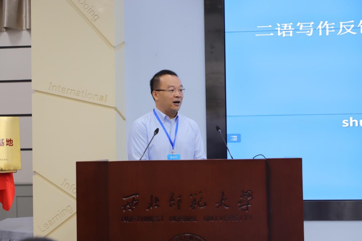澳门大学于书林副教授以“二语写作反馈研究中的写作任务、写作过程和写作者”为题,强调写作反馈是二语写作和应用语言学研究领域的重点领域。他认为现有研究未能对写作任务表现、写作过程、写作者的感情给予足够重视。于教授通过分析教师反馈、员工反馈、AI反馈,提出写作反馈要关注写作者作为人的全面发展。最后,他呈现了在我国英语写作情景下开展实证研究的途径和方法,并对如何运用反馈提升外语写作者的写作质量提出启示。本场主旨演讲由广东外语外贸大学许琪教授主持。