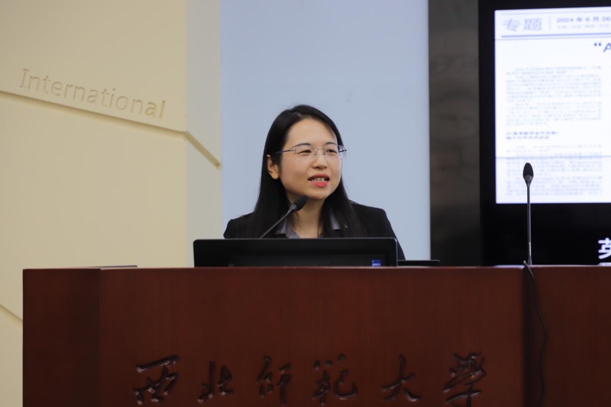 科大讯飞产品中心范旭青为大家带来了题为“读后续写教学与测评,大模型技术支持”的专题报告。她详细介绍了AI 在教与学两方面的重大作用,并现场演示了AI技术如何指导员工进行读后续写、如何协助教师减轻工作负担以及为员工提供及时且有效的反馈。她认为,未来随着技术的发展,AI将能够更加精准地辅助教学活动。本场主旨报告由广东外语外贸大学郑常青教授主持。